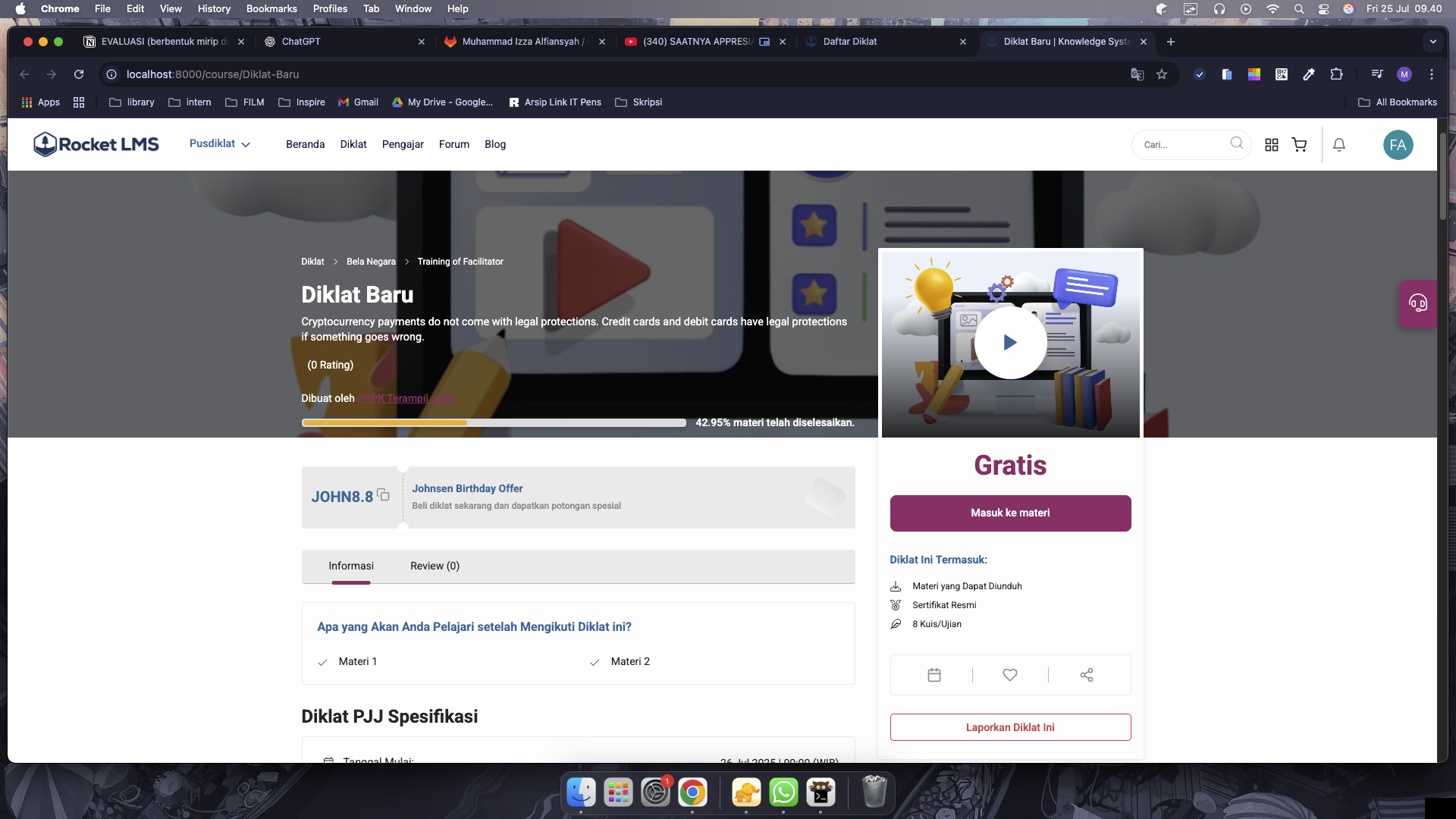 Belajar bersama Badiklat Kemhan. Knowledge Management System adalah platform pembelajaran jarah jauh dan merdeka belajar online dari Badiklat Kemhan RI, yang membantu pengajar membuat diklat dan materi sehingga siswa dapat belajar di dalamnya.