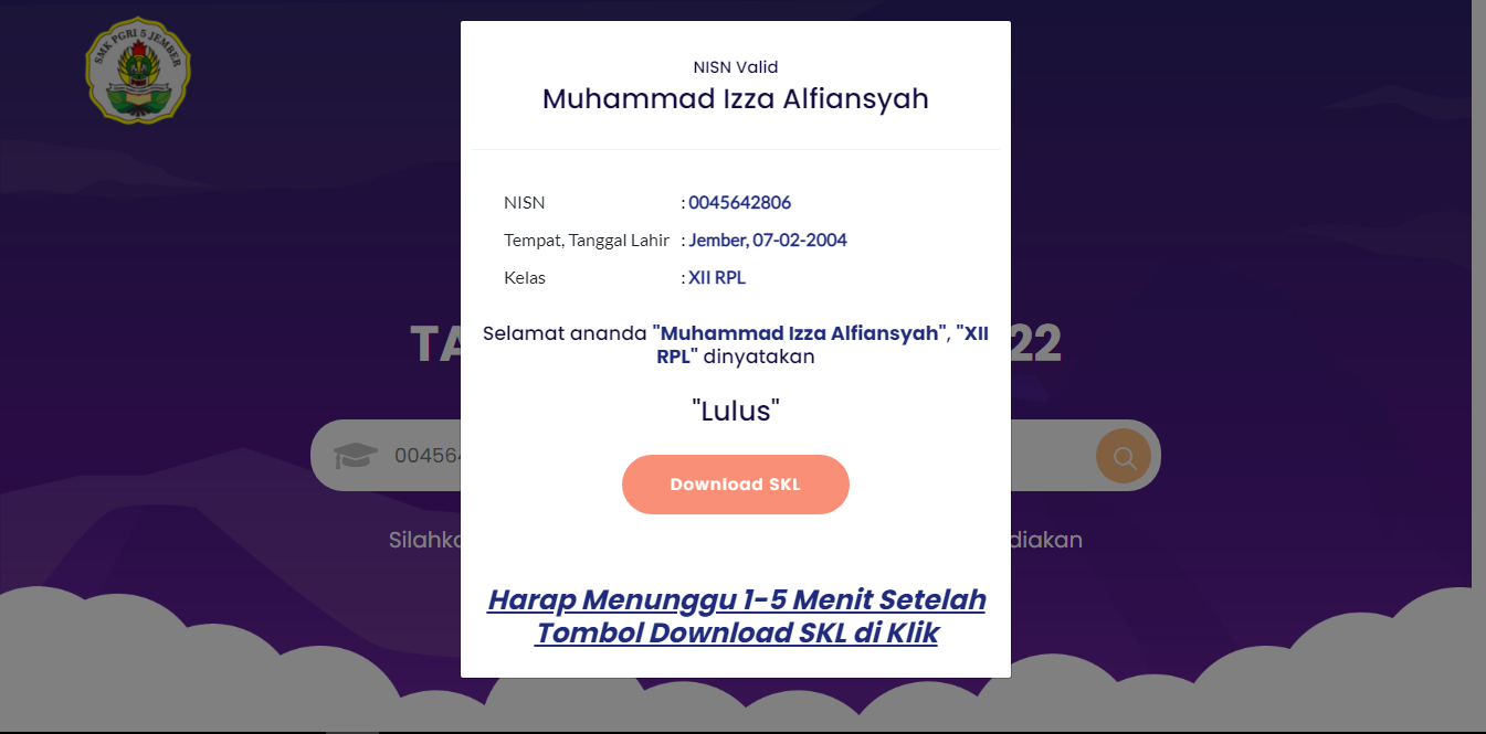 Aplikasi cek kelulusan siswa SMK PGRI 05 Jember